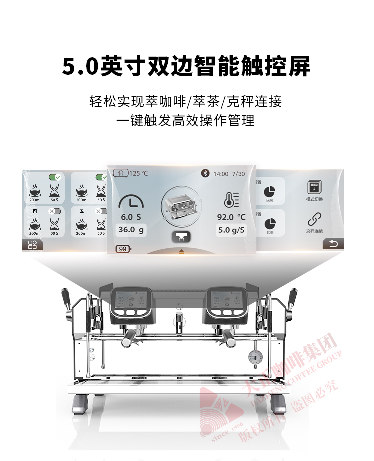 ② 5.0英寸双触控屏,支持设置参数以及萃取时显示萃取参数