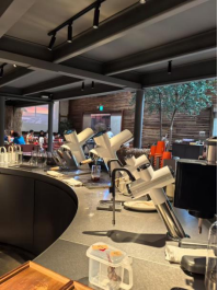 能做出这么多优质的茶品和料理,背后离不开强大的设备支撑。「一茶一瓦」的主要制茶设备选用了仰望星河萃茶机,光是外观就足够吸睛——望远镜造型、嵌入式设计,让整个吧台仿佛一件艺术品,与店铺的新中式美学风格完美契合。